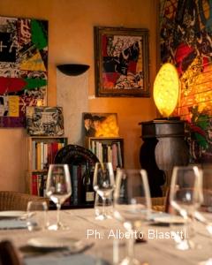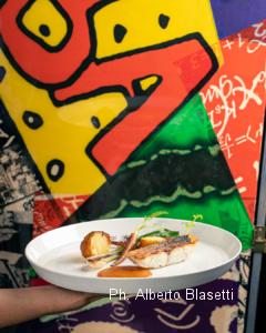 Seppur il territorio lasci traspirare sentori di trattorie tipiche o di sapori tradizionali, urge che adoperiate un reset se siete diretti fin qui. Protagonisti, cucina e identità si distaccano da qualsivoglia locale che potrete scovare nel circondario. E non solo qui nei paraggi. Che sia un luogo fuori dal comune, noi lo appuriamo appena affacciati all’esterno, ammirando uno street artist di fama mondiale – Paolo Capezzuoli AKA Zero-T – mentre sta pittando le pa- reti della struttura con un mega murales in omaggio alle passioni dei due titolari. “Commissionare questi graffiti è per noi un modo di lasciare un segno artistico nel tempo” ci spiega subito Mariella Gennari, proprietaria da cui prende nome l’insegna. “Cibo e vino li consumiamo fin troppo rapidamente, mentre speriamo che quest’opera rimanga impressa più a lungo quale lascito di chi siamo”. Paolo modella con volteggi di spray e riflessi cromatici un’intera parete di bottiglie stilizzate alla base dell’ingresso, proprio sotto un cimitero di etichette d’annata piazzate nei vasi come testimonianza delle numerose bevu- te. “Ci piacciono più le bottiglie dei fiori perché hanno bisogno di meno acqua” afferma svelta Mariella, ironizzando sullo scenario disposto tutt’attorno. Che tipa tosta lei. Look garbatamente freak – con t-shirt di Che Guevara indosso – e la battuta sempre in canna di chi ne ha viste e vissute davvero tante. Ci accoglie nell’anticamera di un ristoro che trasuda fascino retrò, porgendoci pane, olio, qualche fetta di salame e scaglie di Parmigiano extra buono. “Prendo tutto, quando possibile, da artigiani locali o piccole realtà di nicchia – dice – anche il pane. Non sarà perfetto, ma lo fa l’ultimo forno serio di zona. Preferisco sostenere il territorio come posso, con questi piccoli gesti. Se poi c’è necessità di qualcosa di più particolare, però, non si disdegnano anche i distributori. L’importante è es- sere coerenti e rispettosi sempre”. L’aperitivo dipana il languore e ben dispone ad ascoltare la storia della Locanda.